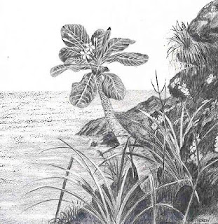 On the islands' northern and western coasts, this is a particularly dangerous time to pick 'opihi (limpets) but a good time to look for sea life on the beaches. In doing so, don't ignore the sand under your feet. The turbulence of storm surf helps create the beaches by bringing ashore the remains of millions of tiny organisms. Much of the white sand of Hawai'i is composed of shells of single-celled animals (Foraminifera, a kind of protozoa), which feed on oceanic bacteria. Some, like the "paper shell" depicted above, grow as large as a quarter of an inch across.